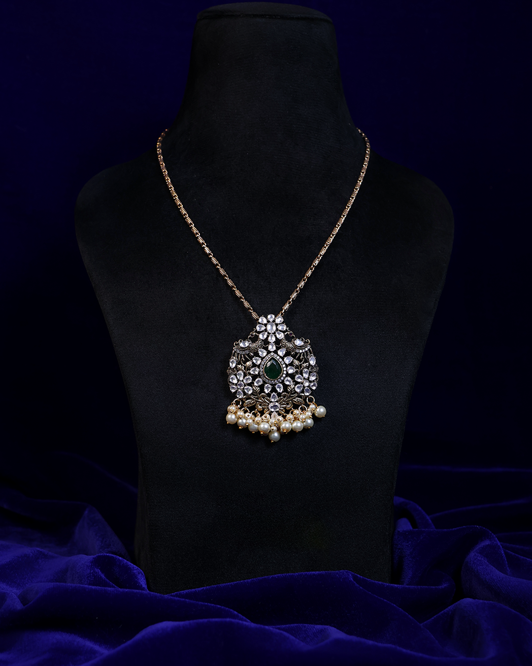 This exquisite oxidized chain features a beautifully crafted locket adorned with a combination of Mojonite stones, blending floral finesse with vintage elegance. Its intricate design and timeless finish make it a sophisticated accessory that enhances any ensemble with a touch of classic charm. Ideal for those who appreciate expert craftsmanship and distinctive style.